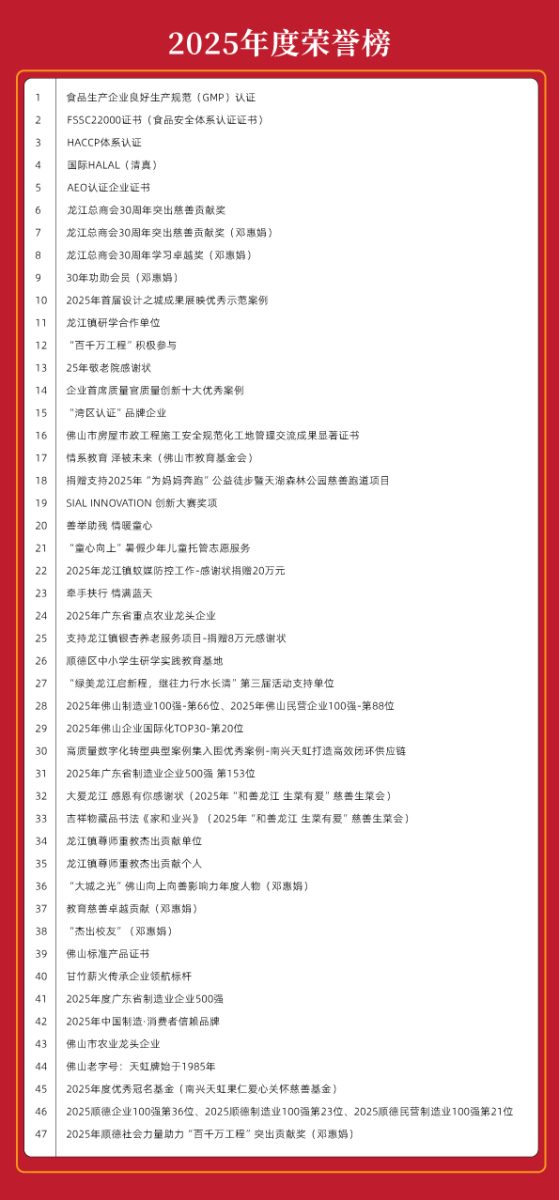 喜讯 | 南兴天虹荣登2025年佛山制造业企业100强、佛山民营企业100强、佛山企业国际化TOP30榜单!